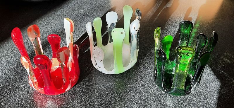 In De Glazen Parel loop je niet op blote voeten. In De Glazen Parel stap je met stevige schoenen binnen in de wereld van versmolten glas. Hier maakt de glasoven de dienst uit; met de techniek van glasfusion breng ik je leukste ideeën tot leven.
